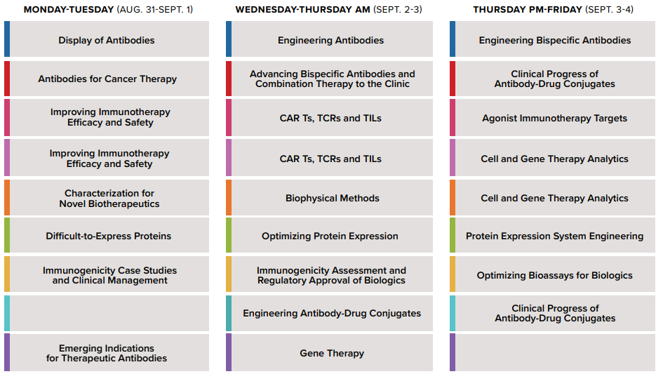 第16屆蛋白質(zhì)工程峰會(huì),將于2020年8月31日至9月4日以線上峰會(huì)的形式進(jìn)行。會(huì)議將圍繞22個(gè)議題和短期課程展開,涵蓋蛋白質(zhì)抗體工程,癌癥免疫療法,腫瘤學(xué)和新興療法等,吸引來自全球的1500余位代表參會(huì),超過100家公司展示新穎的技術(shù)和解決方案。期間,將有300余名來自頂級生物制藥,生物技術(shù),學(xué)術(shù)和政府機(jī)構(gòu)的專家進(jìn)行演講,為大家提供充分交流的平臺。