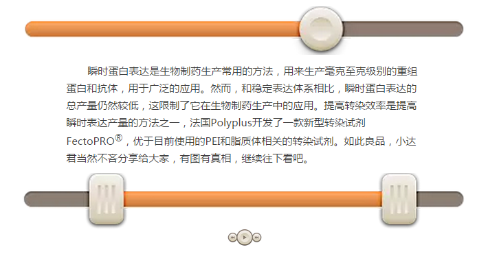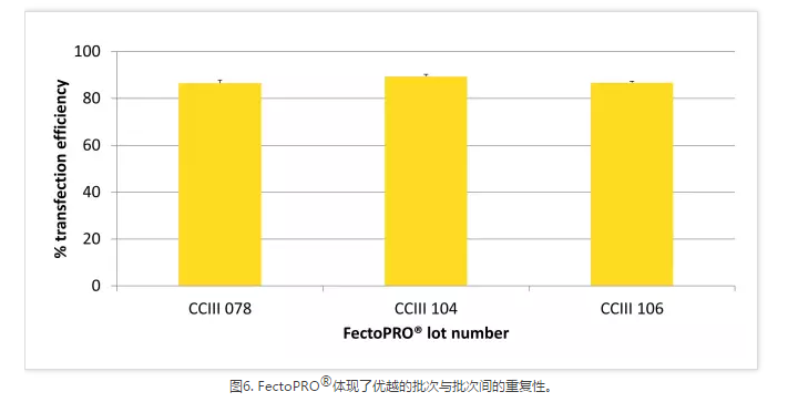 高質量質粒DNA的制備成本非常高,尤其是在進行大規(guī)模蛋白質生產時需要大量的DNA和許多質粒。FectoPRO?通過使用0.4~0.6 μg/106/ml的細胞培養(yǎng)液將DNA成本縮減了40%~60%,使其成為生物制藥生產流程的一項經濟實惠的選擇。