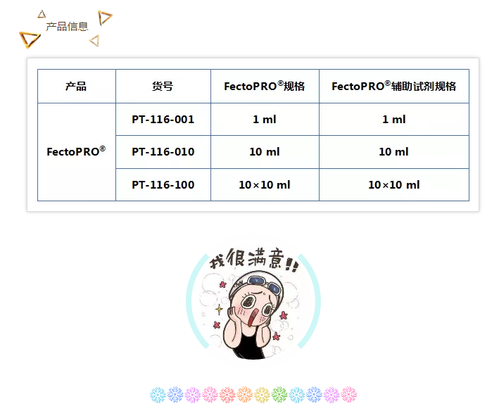 FectoPRO?保證不含動物源成分,且限定化學成分。每個生產批次都經過系統(tǒng)化的批次管理和出廠測試。采用先進的質控流程:蛋白質生產率、細胞活性及完全無菌。