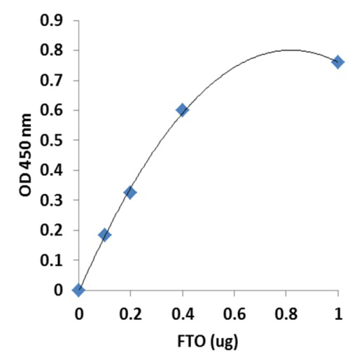 添加不同濃度重組FTO酶,測(cè)定OD值。OD值與FTO酶活性成反比。