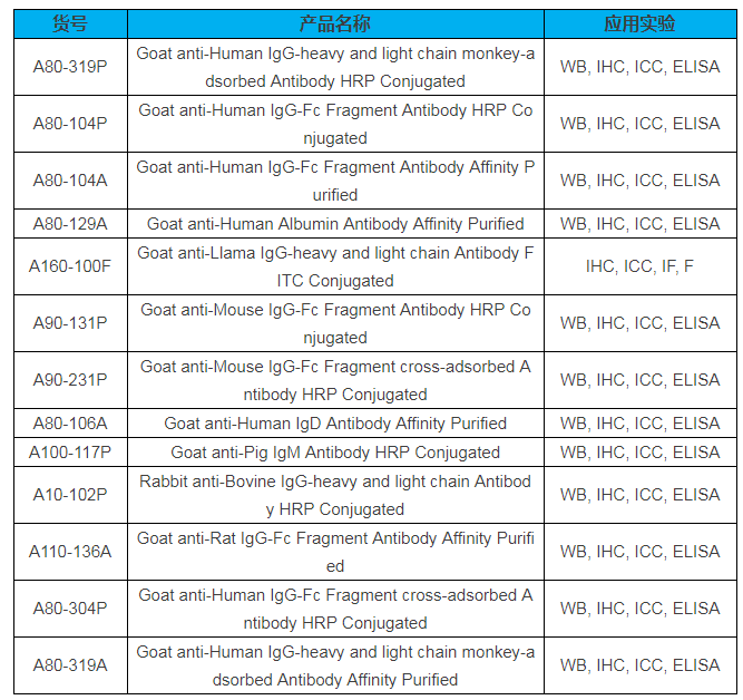 Bethyl 二抗熱賣產(chǎn)品列表