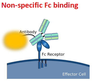 在我們流式實驗中,通常使用的抗體都是會有Fc段存在的,而細胞如果高表達Fc受體(比如巨噬細胞、B細胞或者腫瘤細胞等),那么在抗體染色的過程中,很有可能抗體Fc段會與細胞表面的Fc受體進行結(jié)合,從而產(chǎn)生非特異性的染色結(jié)果,最終導(dǎo)致流式實驗結(jié)果假陽性/假陰性的存在。