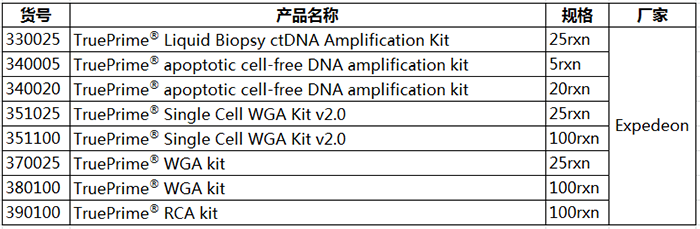 擴增能力強,無引物互作,無擴增偏倚,覆蓋率高,保真性好,重復(fù)性好,集諸多優(yōu)勢于一身的TruePrime?,還有什么理由不選擇呢?TruePrime?會為您的單細(xì)胞測序工作帶來極大的便利!除此之外,Expedeon還提供用于擴增cfDNA, circular DNA等多種類型DNA的試劑盒喲!