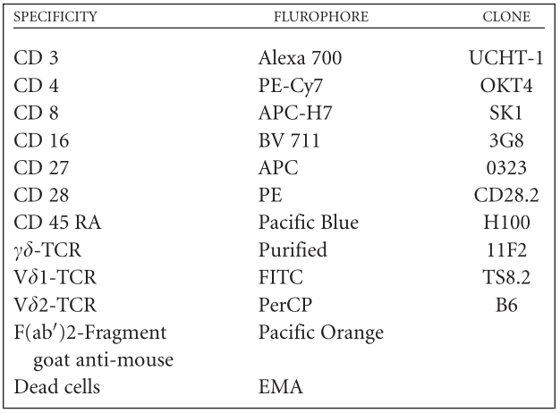 • OMIP‐020:Phenotypic characterization of human γδ T‐cells by multicolor flow cytometry. Cytometry A.