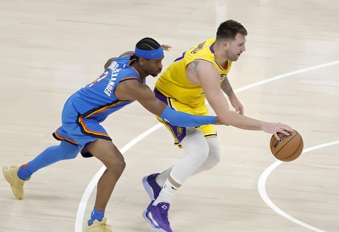 但如果拋開團隊從單人表現來看,最值得關注的還是湖人東契奇,36.5分僅次于坎寧安一人,附加8.3籃板10.5助攻同樣出色。雖然整體攻防狀態不如雷霆,但依舊在同組遙遙領先于其他球隊。